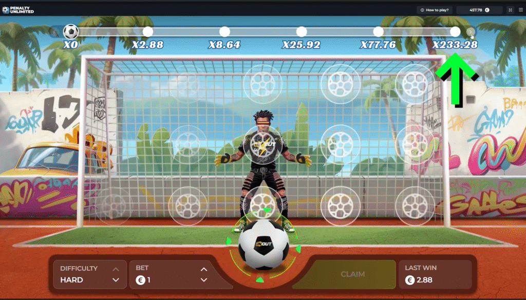 Wyjątkowość tego mechanizmu opiera się na możliwości zdobywania gigantycznych mnożników przy kolejnych celnych strzałach na bramkę. Niektóre mnożniki sięgają nawet x13 770 000 i rosną wraz ze wzrostem poziomu trudności.
