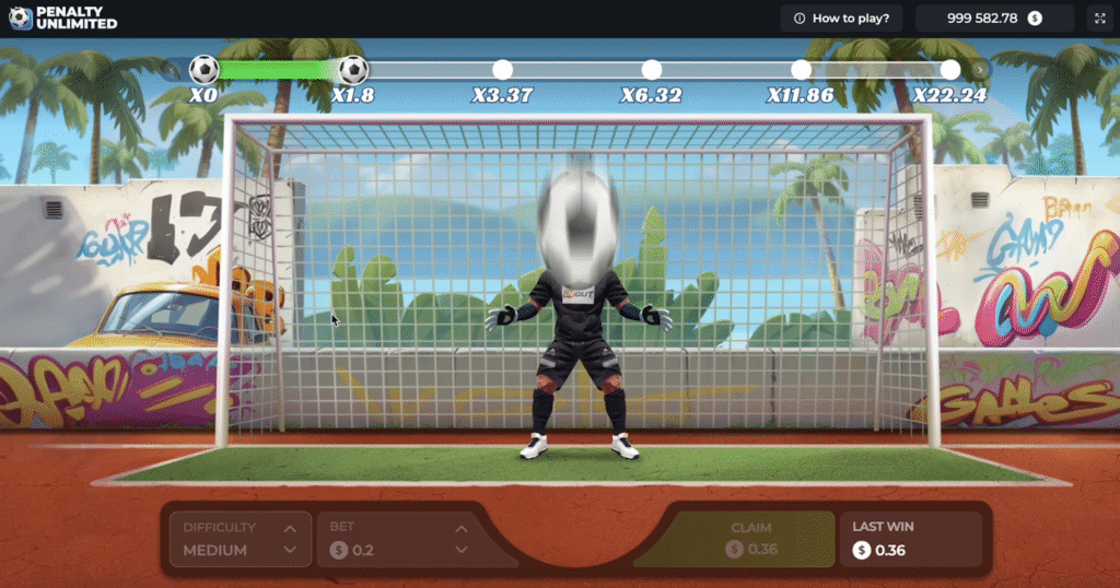 Penalty Unlimited to mini-gra stworzona przez Inout Games, której premiera miała miejsce w maju 2025 roku. Koncepcja polega na symulacji rzutów karnych – celem jest zdobycie jak największej liczby bramek bez zatrzymania piłki przez bramkarza. Każde celne uderzenie zwiększa mnożnik potencjalnej wygranej, a kumulacja udanych strzałów pozwala na spektakularne wypłaty: maksymalnie można osiągnąć efekt zwielokrotnienia stawki nawet o x13 770 000! Nowoczesna technologia Provably Fair dba o pełną przejrzystość i losowość wyników, dając pewność uczciwej rozgrywki wszystkim uczestnikom.